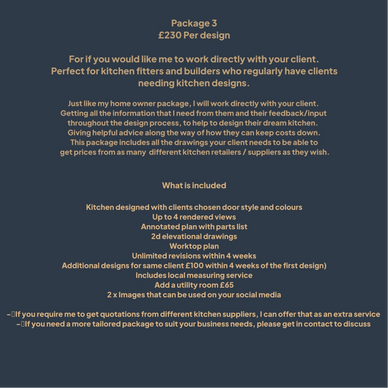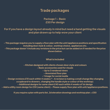 Whether you are an interior designer, architect or contractor/ builder, I do specific design packages aimed towards trade professionals. Giving the benefits of having an in-house designer but without the expense and commitment. You can use my service as and when you need to.